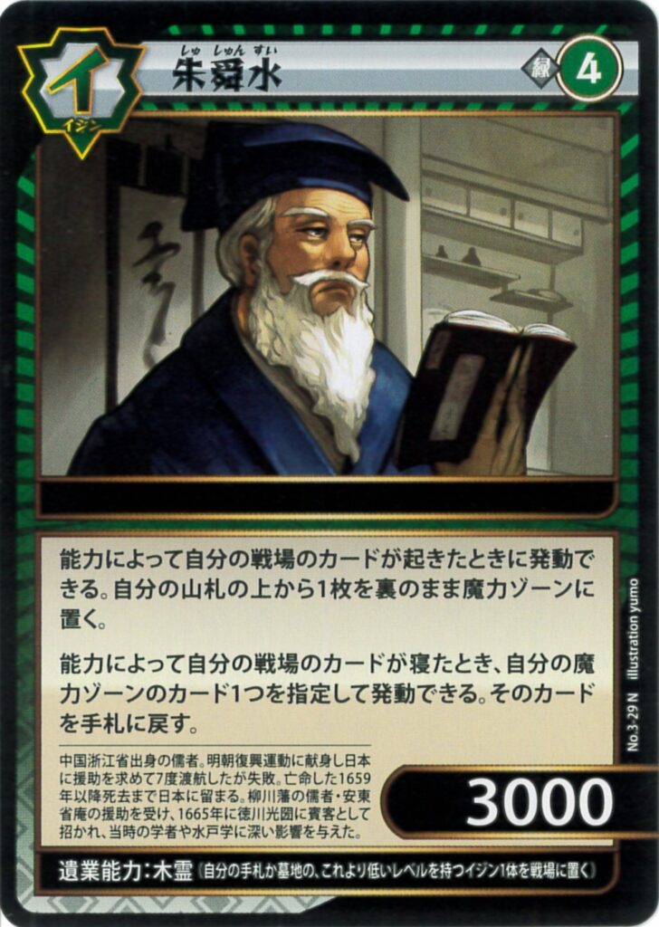 能力によって自分の戦場のカードが起きた時に発動できる。自分の山札の上から1枚を裏のまま魔力ゾーンに置く。 能力によって自分の戦場のカードが寝たとき、自分の魔力ゾーンのカード1つを指定して発動できる。そのカードを手札に戻す。 | |||||