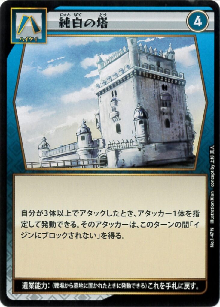 1-47 純白の塔 2023.07.222024.01.31 色属性レアリティレベルパワー特性青ハイケイN4ーーテキスト 自分が3体以上でアタックしたとき、アタッカー1体を指定して発動できる。そのアタッカーは、このターンの間「イジンにブロックされない」を得る。遺業能力これを手札に戻す。 TIPS 数の並べることで確実にガーディアンを削ることができるハイケイ。 重ねて設置することで複数体選ぶことも可能。